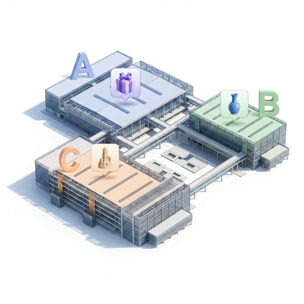 The Pazhou Complex is divided into Areas A, B, and C. For the 139th Canton Fair Phase 2, your world revolves around three specific sectors: Gifts and Premiums, Home Decorations, and Ceramics.